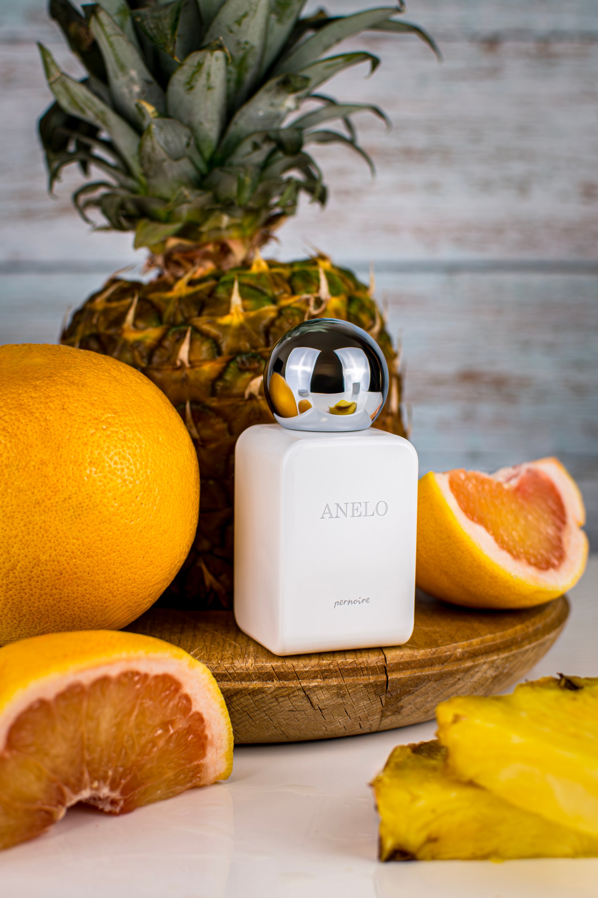 Anelo åpner strålende frisk og fruktig med en cocktail av ananas, mandarin og pomelo som gir en umiddelbar følelse av vitalitet og paradis. I hjertet utvikler den seg til en eksotisk miks av mango, ingefær og magnolia som gir dybde og fylde. Basen hviler på amber og vetiver, med patchouli som tilfører en sofistikert, naturinspirert sensualitet.