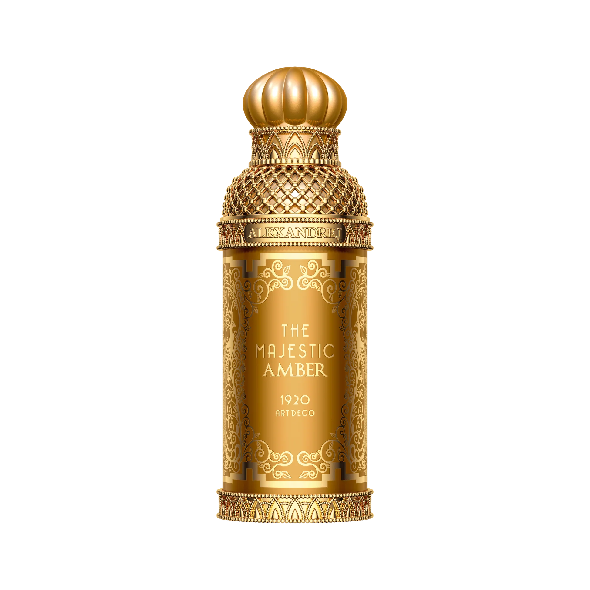 Majestic Amber legemliggjør den tidløse elegansen og sofistikasjonen til Art Deco. Lansert i 2020 for å markere hundreårsjubileet for denne ikoniske epoken, er duften en hyllest til 1920-tallets overdådighet, glamour og feminine styrke. Den gyldne flasken, dekorert med raffinerte geometriske og arabeske detaljer, er et kunstverk i seg selv – en perfekt balanse mellom modernitet og tradisjon.